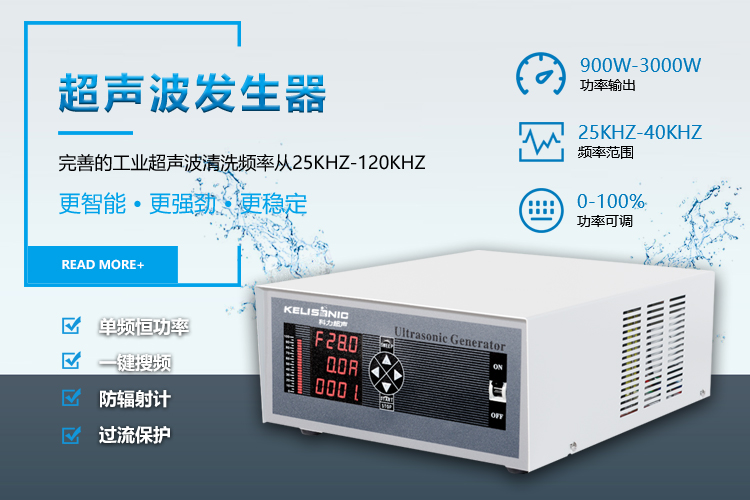 星空體育KG-X6型超聲波發(fā)生器從25KHZ至40KHZ的振動(dòng)因子僅通過(guò)連接從而達(dá)到最佳頻率進(jìn)行振蕩、精密輸出控制,從而實(shí)現(xiàn)全數(shù)字控制。恒功率一鍵追頻,讓超聲波清洗機(jī)操作更為簡(jiǎn)單。